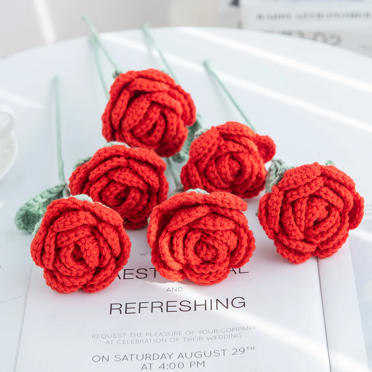 1/5pcs Artificial Flowers Handmade Crochet Yarn Roses Outdoor Garden Wedding Party Bridal Bouquets Home Festival Diy Gift Box