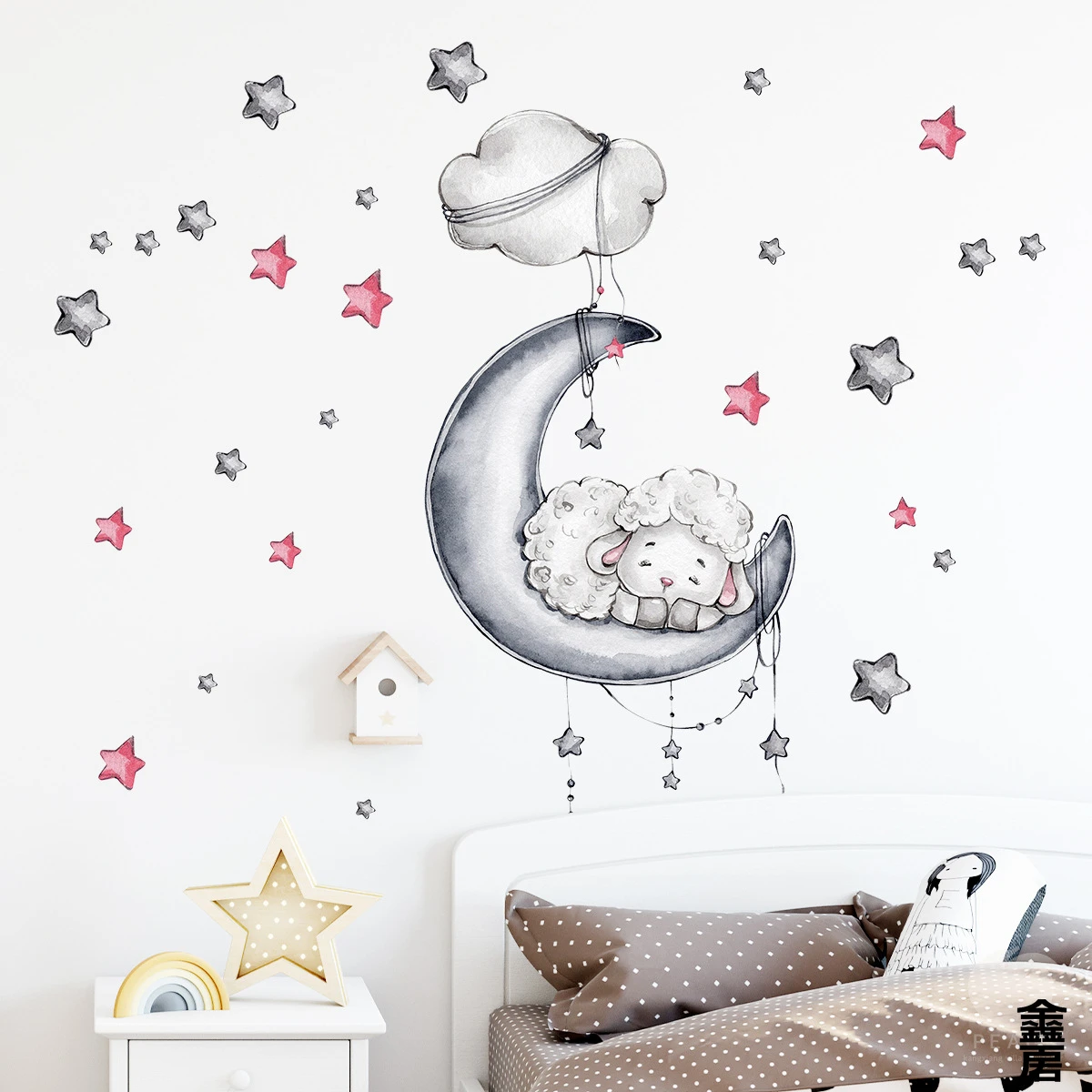 1Pc Cartoon Animal Star Moon Cat Rabbit Bear Wall Stickers for Room Decoration Living Room Decor for House