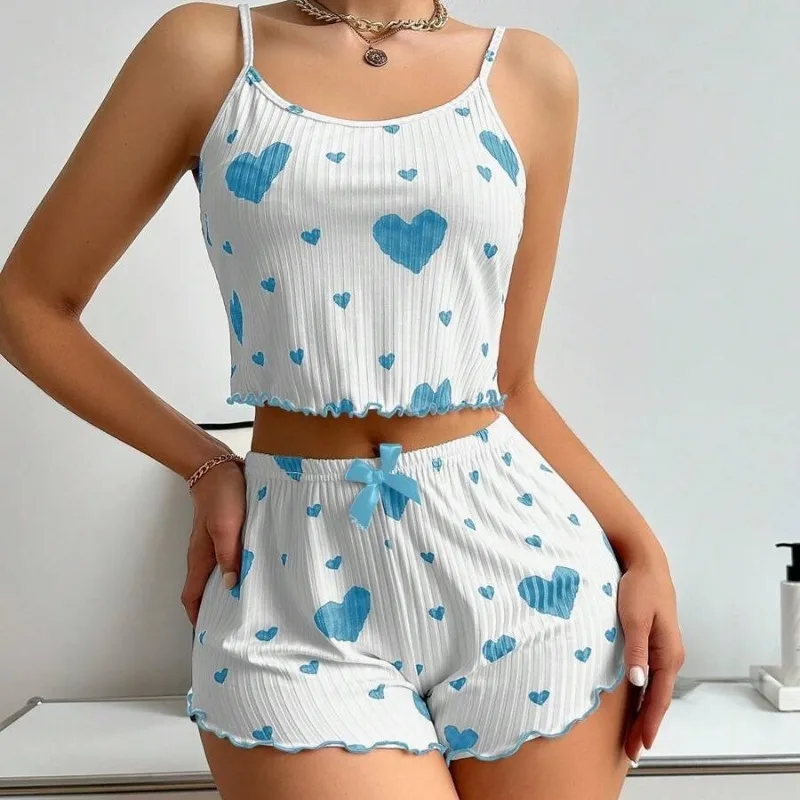 ALI shop - rezultati pretrage ... ... New Women's Pajama Set Knitted Love Printed Sweet Strap Shorts S M L White Breathable Casual Love Printed Home Pajama Set ::: 2021 ::: :::