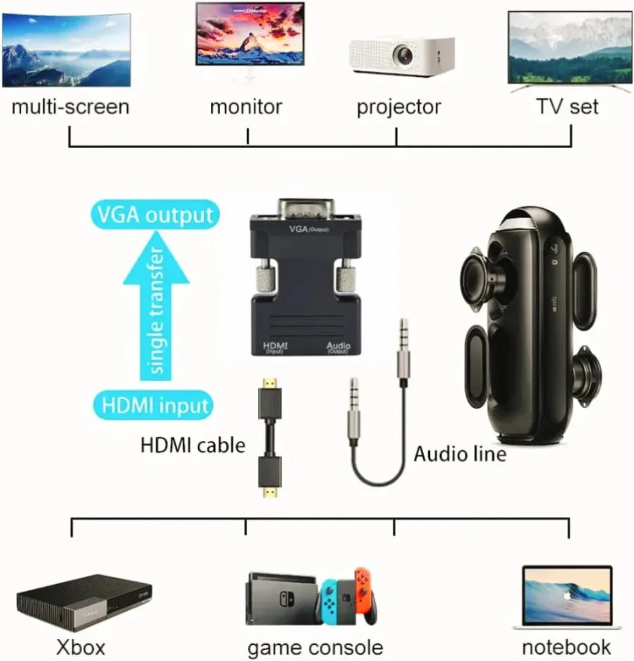 aliexpress , ali , shop , ali shop , online , prodavnica , online shop , online prodavnica , kupujem , prodajem , HDMI-compatible Female To VGA Male Converter with 3.5mm Audio Cable for PS4 Monitor Projector PC Laptop 1080P HD To VGA Adapter