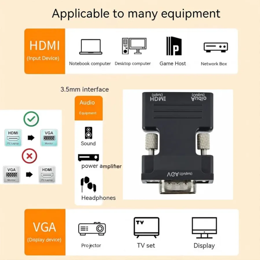 HDMI-compatible Female To VGA Male Converter with 3.5mm Audio Cable for PS4 Monitor Projector PC Laptop 1080P HD To VGA Adapter