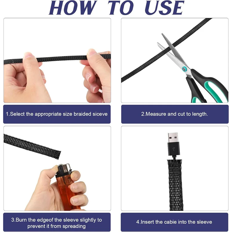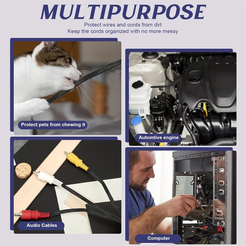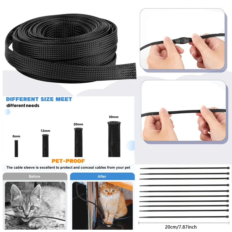 Braided Wire Loom PET Cable Loom Expandable Braided Sleeving Wire Sleeve for TV Computer Home Theater Cable Sleeve 3M/10M
