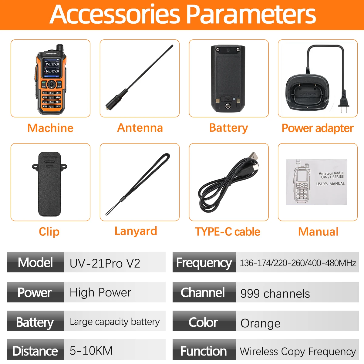BaoFeng UV-21 Pro V2 Wireless Copy Frequency Type-C Walkie Talkie High Power Long Range Upgrade UV-5R Ham Radio