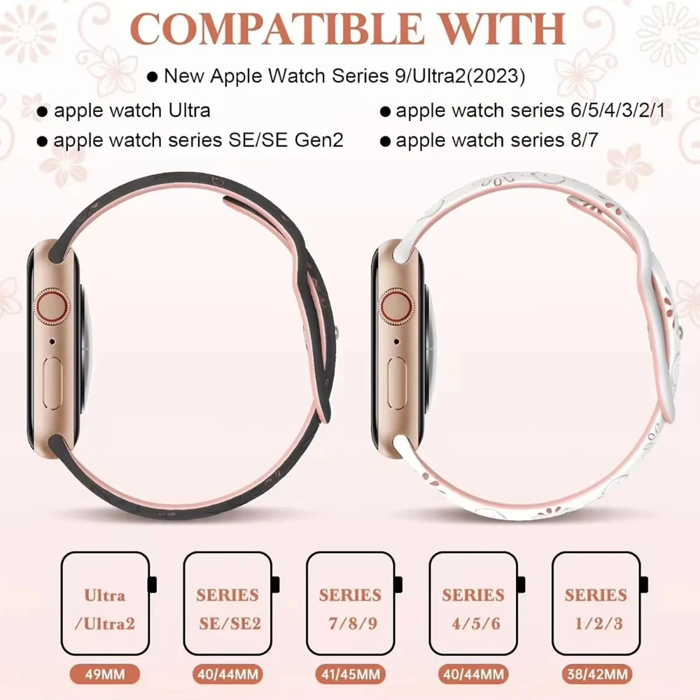 Engraved Strap For Apple Watch Bands 40mm 44mm 41mm 49mm 45mm 38mm 42mm Silicone Bracelet For iwatch Series 9 7 SE 6 5 4 8 Ultra