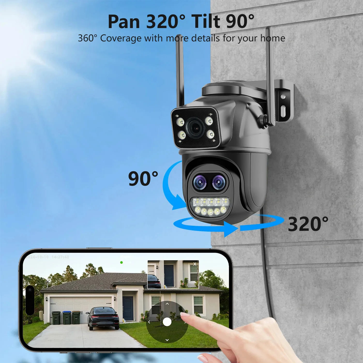 PEGATAH 15MP WiFi Security Camera PTZ Outdoor Dual Screen 10X Zoom Human Detection 10MP Surveillance Video IP Camera O-Kam Pro