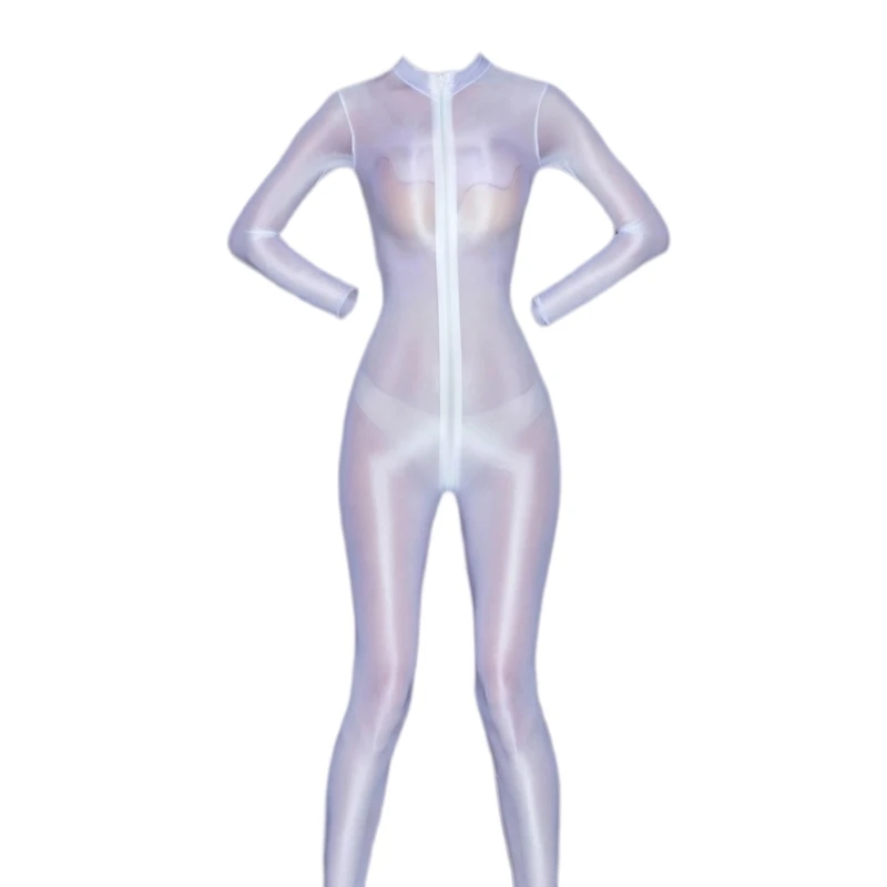 New Oil Shiny Silky Transparent Catsuit Bodysuit Women Open Crotch Full Body Stockings Fetish Cosplay Costumes
