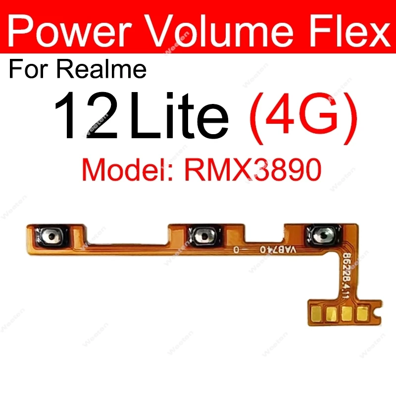 Power Volume Flex For Realme 12 Pro 12Pro Plus 12 Plus 12X 12Lite 4G 5G Power Voulme Side Keys Buttons Flex Cable Spare Parts