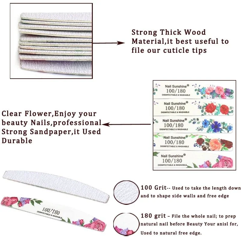 10Pcs Lot Professional Nail Files 100/180 Griting Wood Strong Sandpaper Emery Doub-Sided Nails Buffer Block File Art Nail Tools