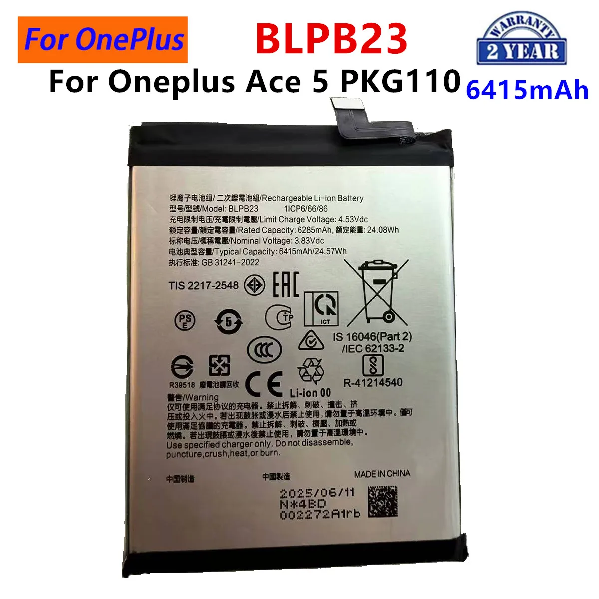 Brand New BLP657 BLPB23 Replacement Battery For OnePlus 6 A6001 Genuine OnePlus ACE 5 PKG110 Phone Batteries