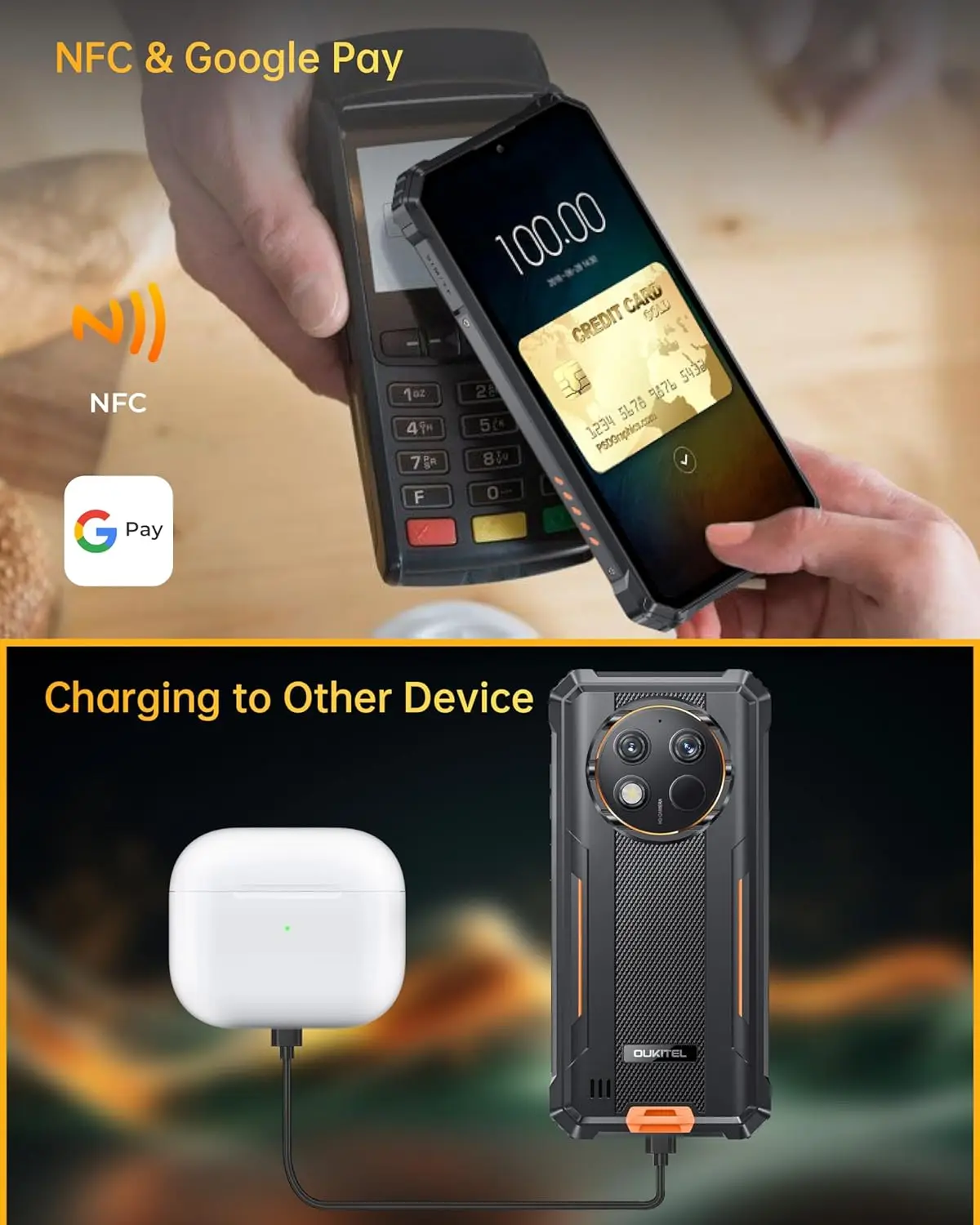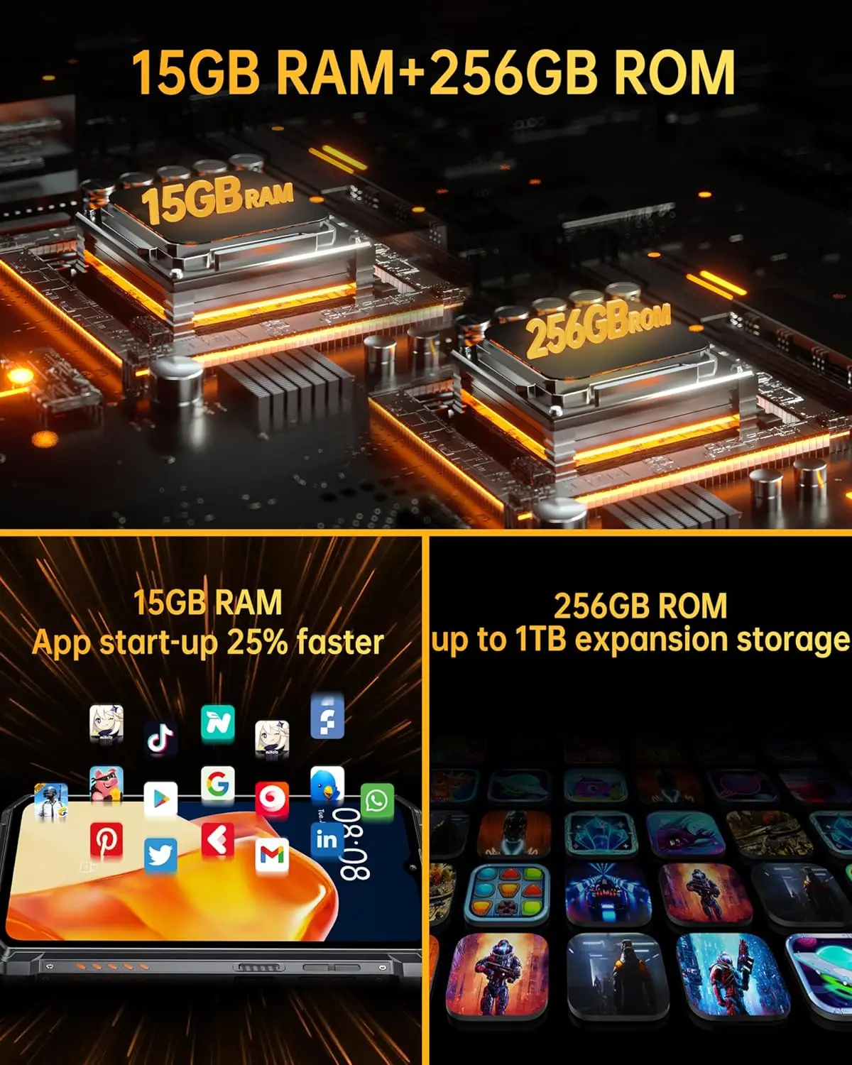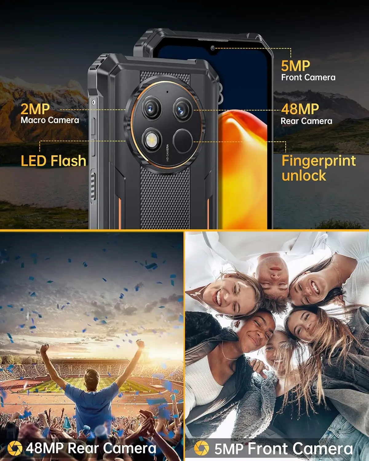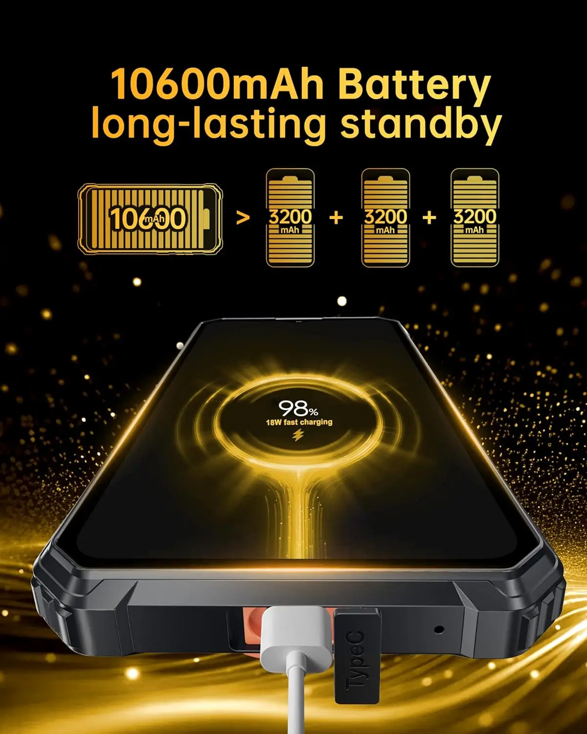 OUKITEL WP28 Rugged Smartphone, 15GB+256GB, 48MP Rear Camera cellphones, 10600mAh Battery, 6.52'' Screen mobilephones, EU Plug