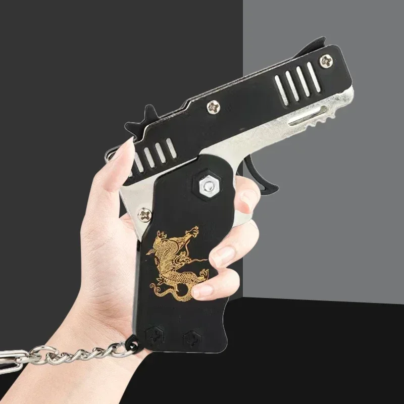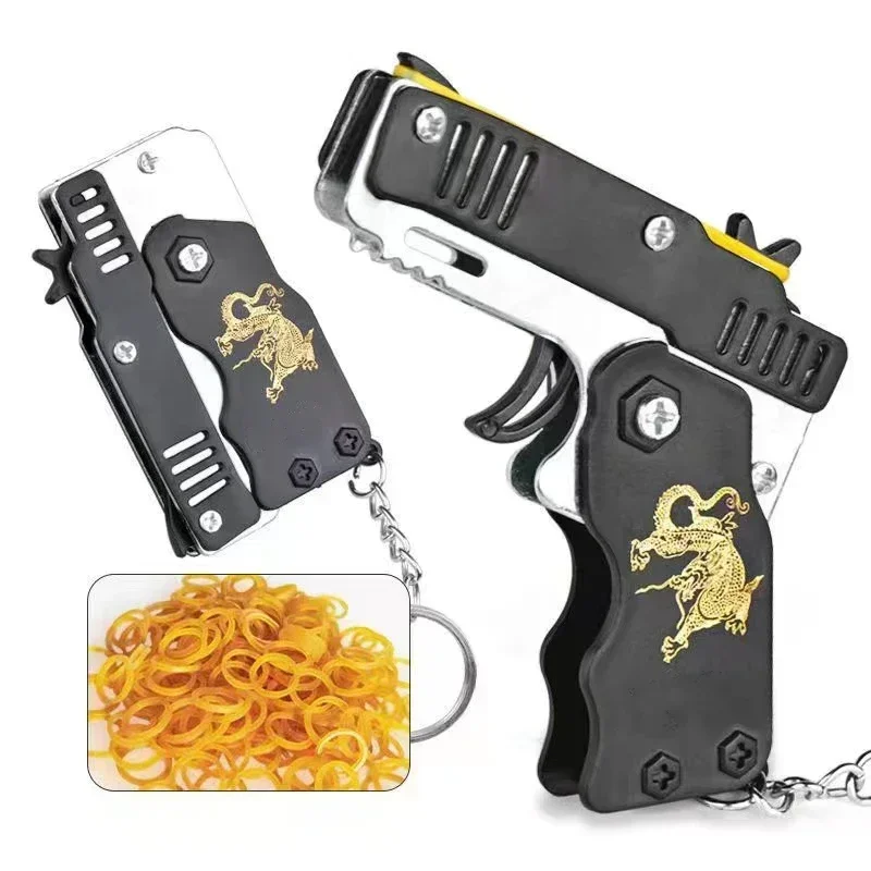 1PCs keychain elastic leather rubber band shooting pistol kid outdoor party folding gifts boyfriend fidget toys