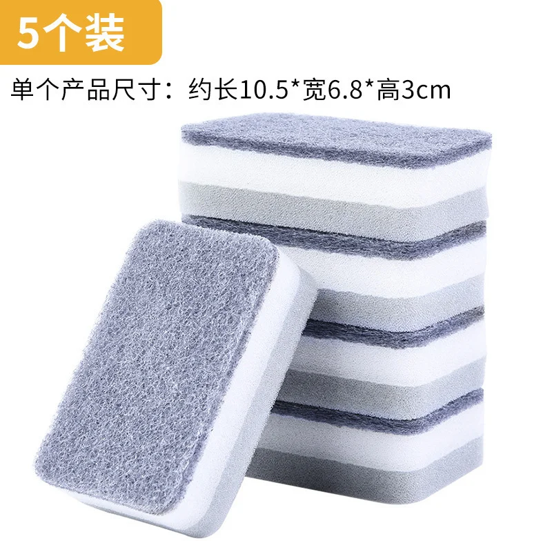 5/10Pcs Home Double-sided Sponge Wipe Gray Dirt-resistant Scouring Pad Kitchen Stain Sponge Wipe Professional Cleaning Supplies