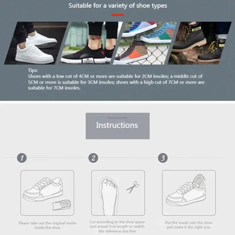 ALI shop - rezultati pretrage ... ... 1Pair Height Increase Insoles Casual Sports Shoes Insole for Feet EVA Shock Absorbing Shoe Pads 2.3/3.3/4.3cm Growing Shoe Sole ::: 2021 ::: :::