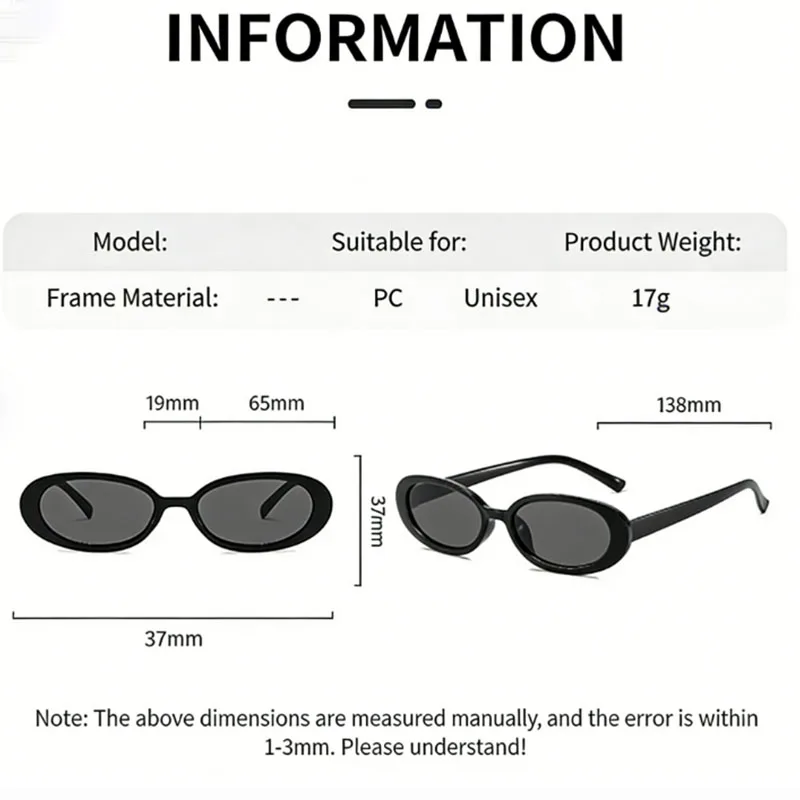 2PCS Classic Oval Small Frame Sunglasses, Fashion Decorative Sun Glasses for Outdoor, Travel, Driving & Beach Holidays