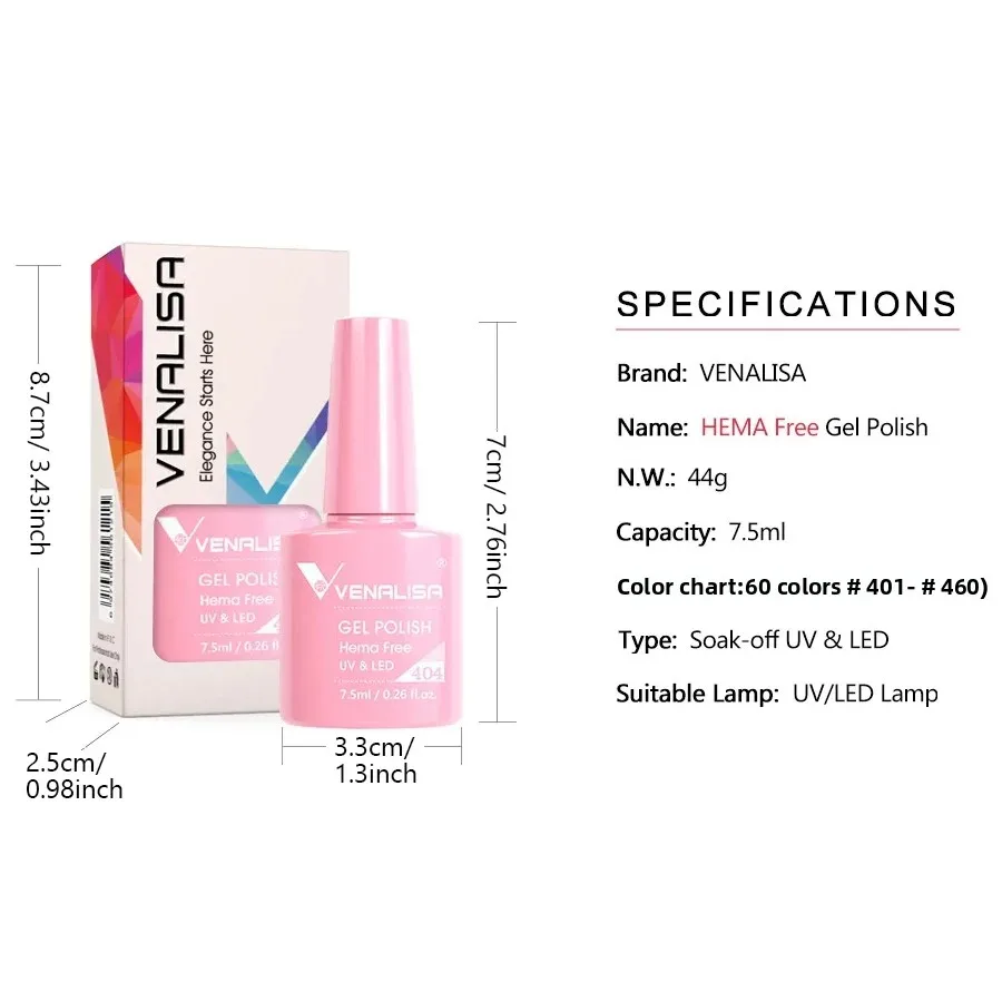 Venalisa Nail Gel Polish 7.5ml HEMA FREE Soak Off UV LED Gel Varnish Full Coverage Super Texture Gorgeous Nail Manicure