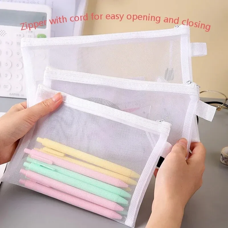 3pcs/Set Transparent Document Bag Mesh Zipper Information Bag Small Fresh Large Capacity Stationery Bag