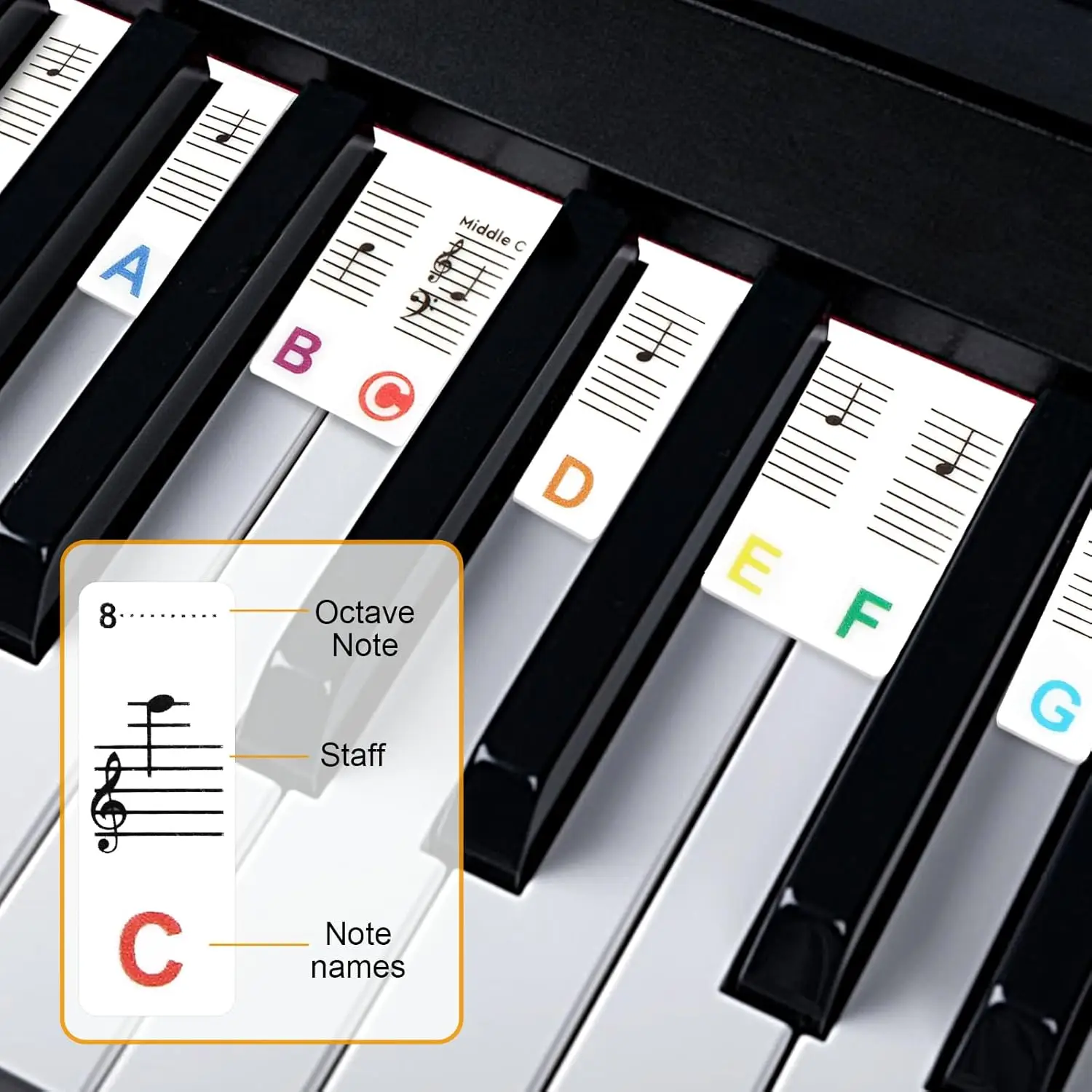 Miwayer 61/88 Key Silicone Piano Keyboard Note Labels - Removable Note Guide for Beginners, Reusable Waterproof Piano Stickers