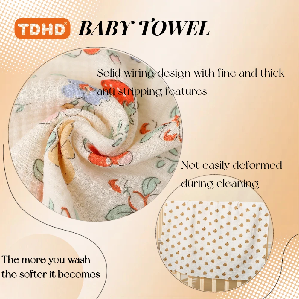 TDHD Soft Foldable Swaddle Blanket for Newborns - Light Beige-Friendly Cotton, Perfect for Bath Time & Cuddling, Wrinkly Texture