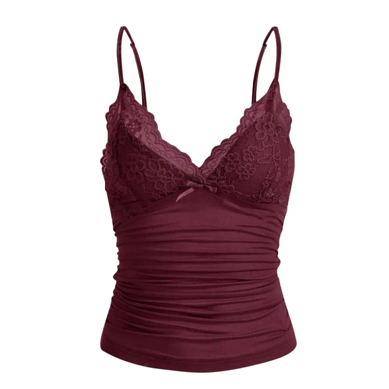 European American style Y2K lace V-neck bow solid color suspender spicy girl low cut vest slim fit short top traffic 2025
