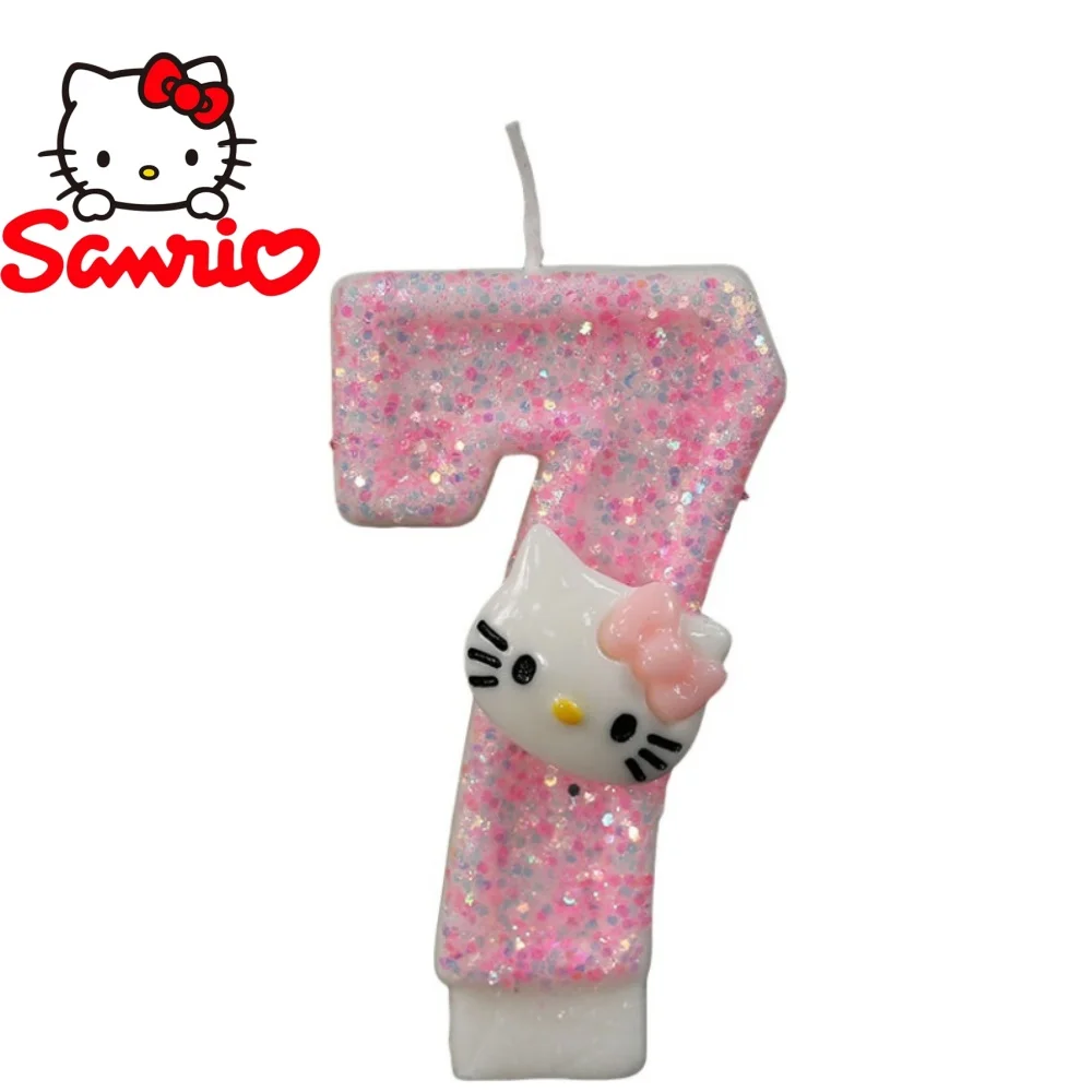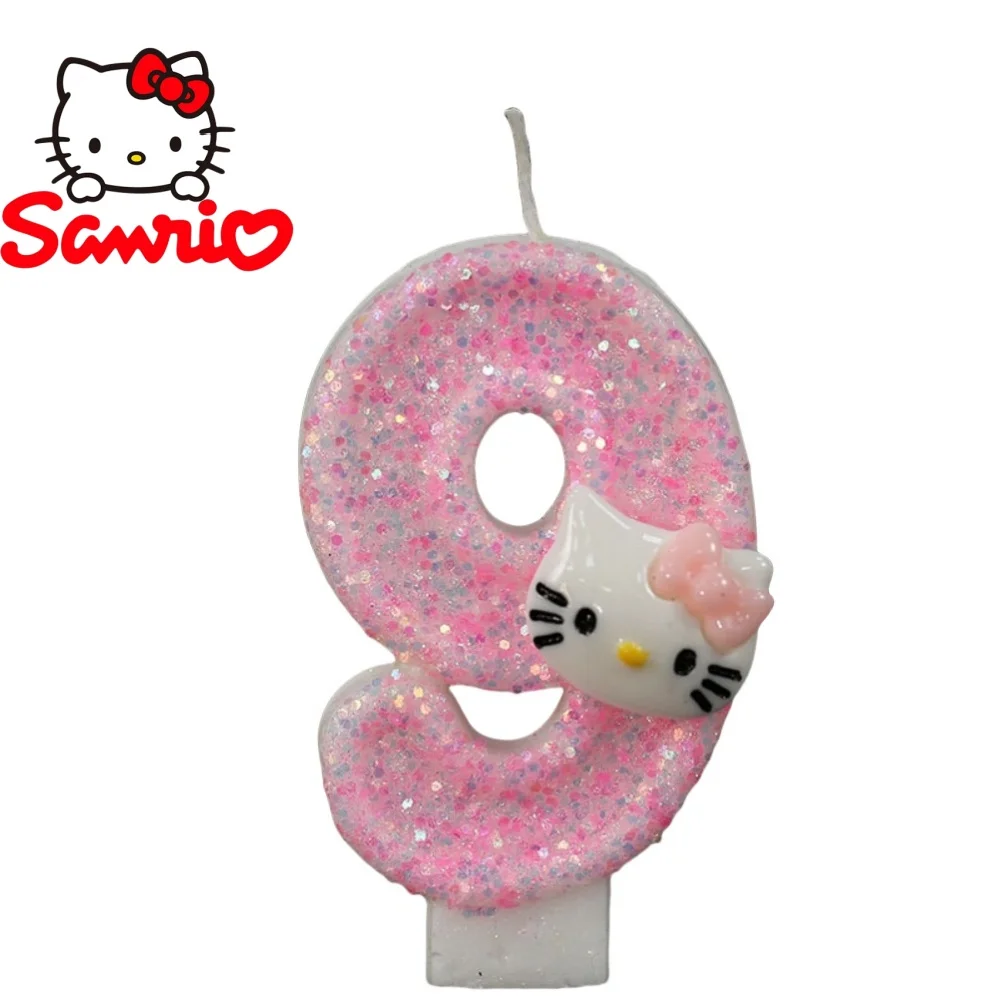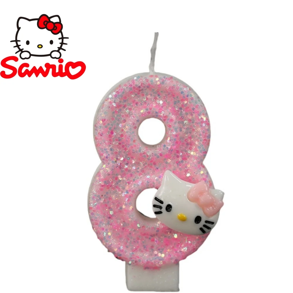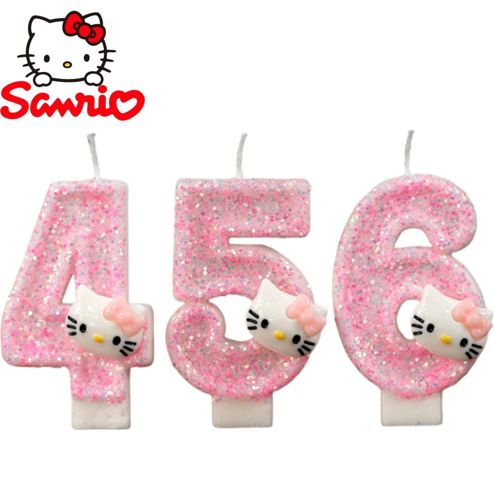 Sanrio Kawaii HelloKitty Handmade DIY 0-9 Pink digital candle Suitable for Birthday Party Cake Decoration, anniversary parties