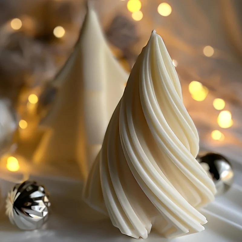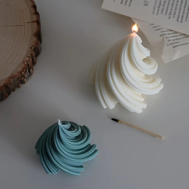 3D Geometric Christmas Tree Moulds - Silicone spiral taper candles resin soaps and clay craft moulds for DIY holiday decorations