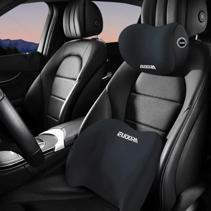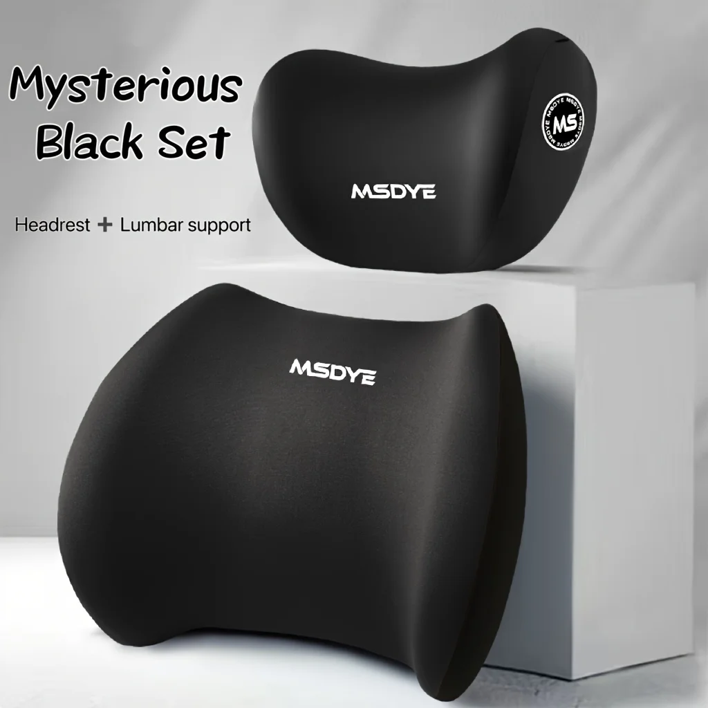 Car Universal Headrest Lumbar Support Memory Foam Cervical Neck Pillow Ergonomic Backrest Waist Cushion Auto Seat Protector Set