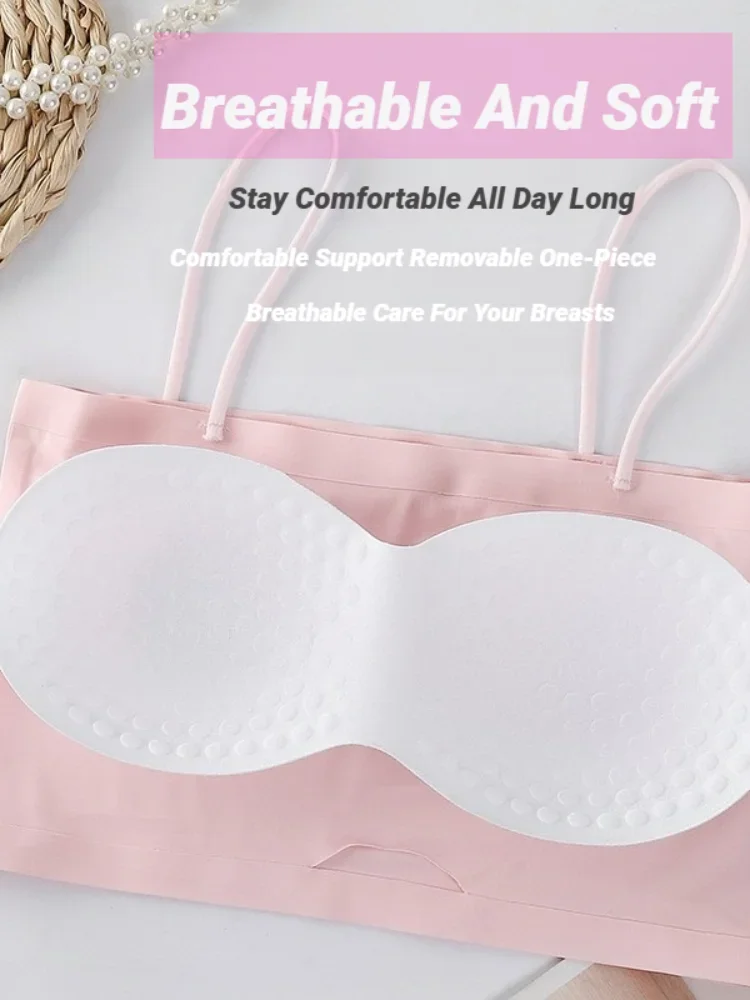 Seamless Women’S Crop Camisole Bralette Padded Wireless Tank Top Spaghetti Straps Backless Soft Stretchy Bra Vest Solid Croppe