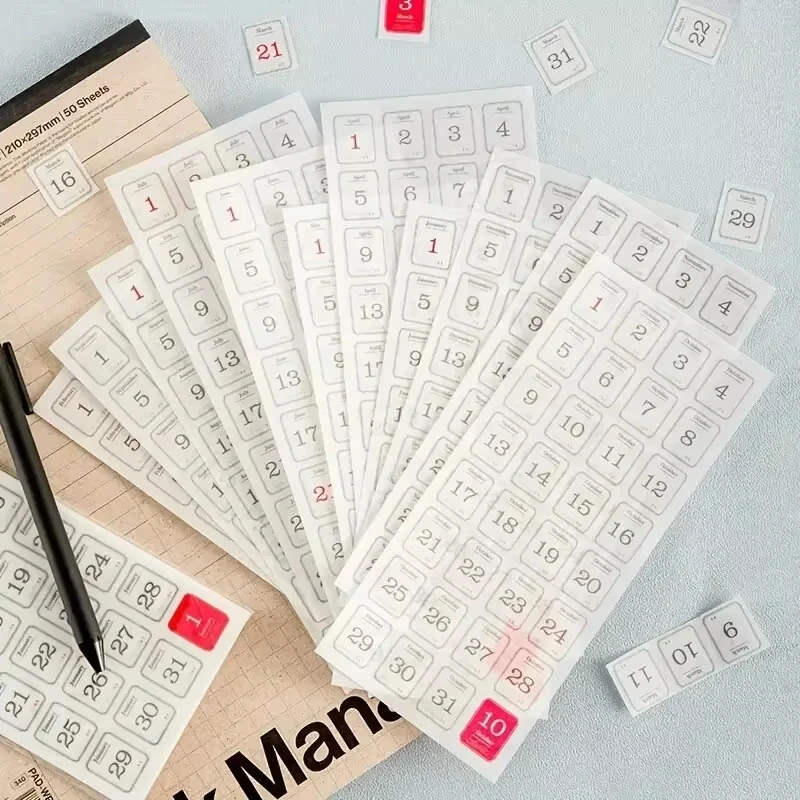 12pcs 365 Days Calendar Decorative Stickers Scrapbooking Diy Label Diary Stationery Album Journal Planner Month Number Sticker