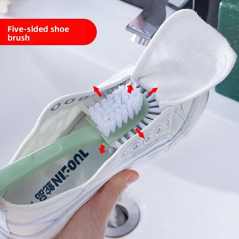 5 Sided Shoe Brush Set Colorful Soft Bristles Ergonomic Handle Multi Functional Cleaning Tool for Shoes Laundry Toilet Home