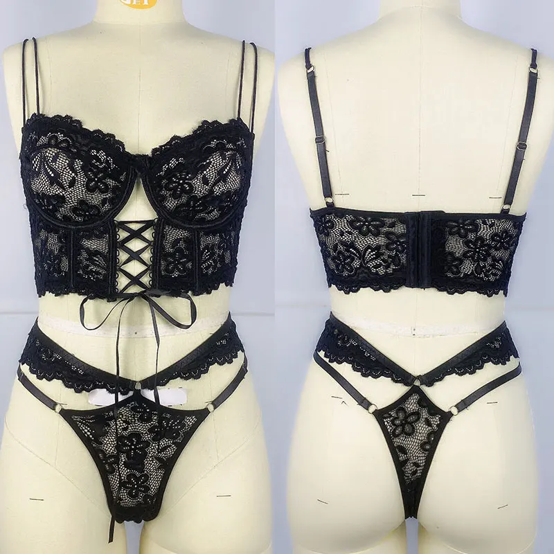 Luxury Lace Up Underwear Porn Exotic Sets Outfits Intimate Sensual Lingerie Delicate Bilizna Sets Hot Clothes