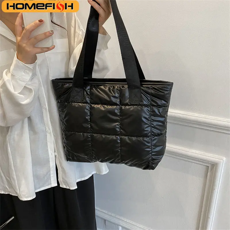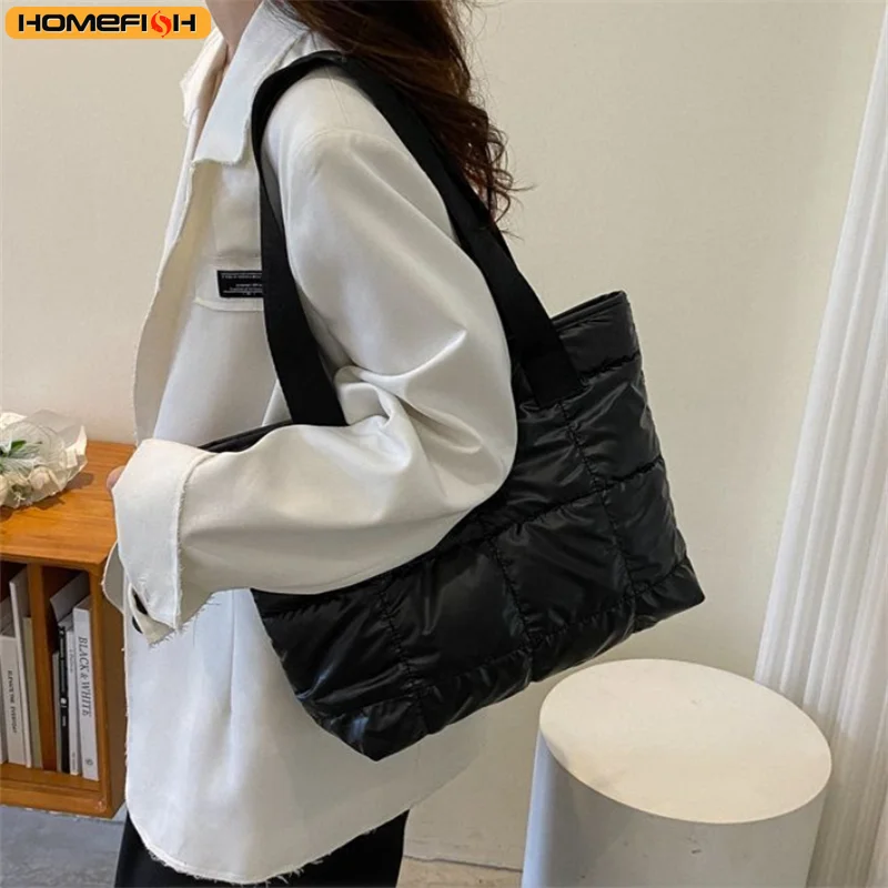 HOMEFISH Ladies Tote Handbags Large Capacity Cotton Padded Shopping Bag Rhombus Portable Handbag Quilted Solid
