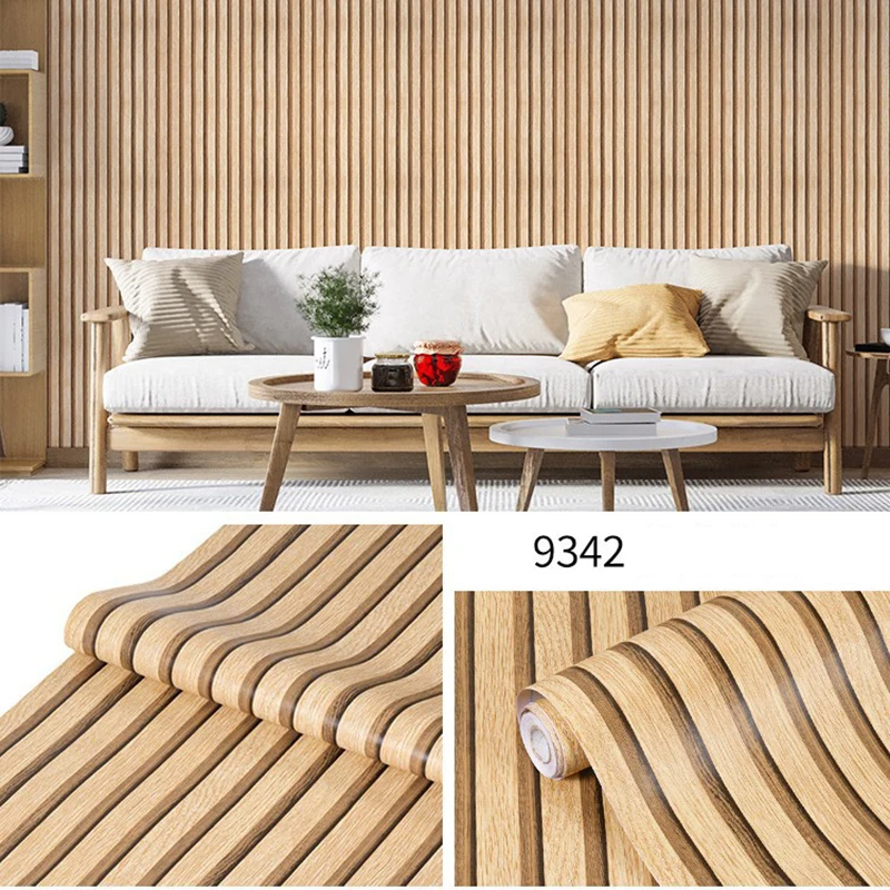 45cm vintage wood grain striped wallpaper self-adhesive living room bedroom background wall sticker PVC home decoration sticker