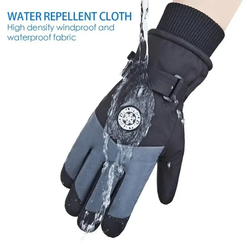 Winter Uni Snowboard Ski Gloves PU Leather Non-slip Touch Screen Waterproof Motorcycle Cycling Fleece Warm Snow Gloves