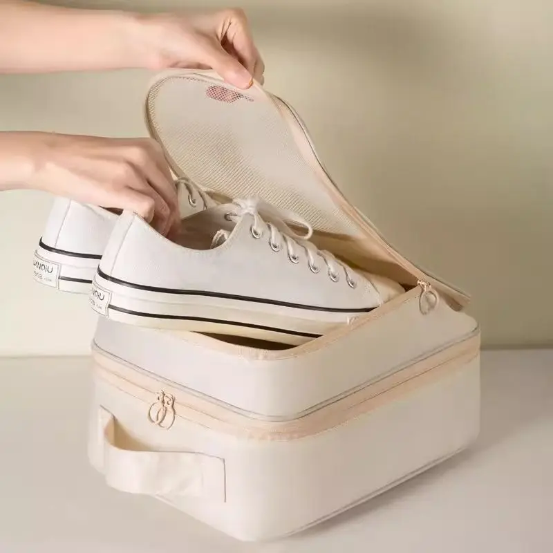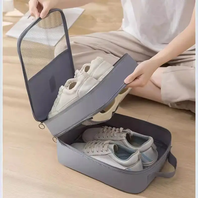 Travel Shoe Bag Storage Bag Washed Diagonal Breathable Mesh Multiple Pairs of Shoes Portable Shoe Box for Business Trips