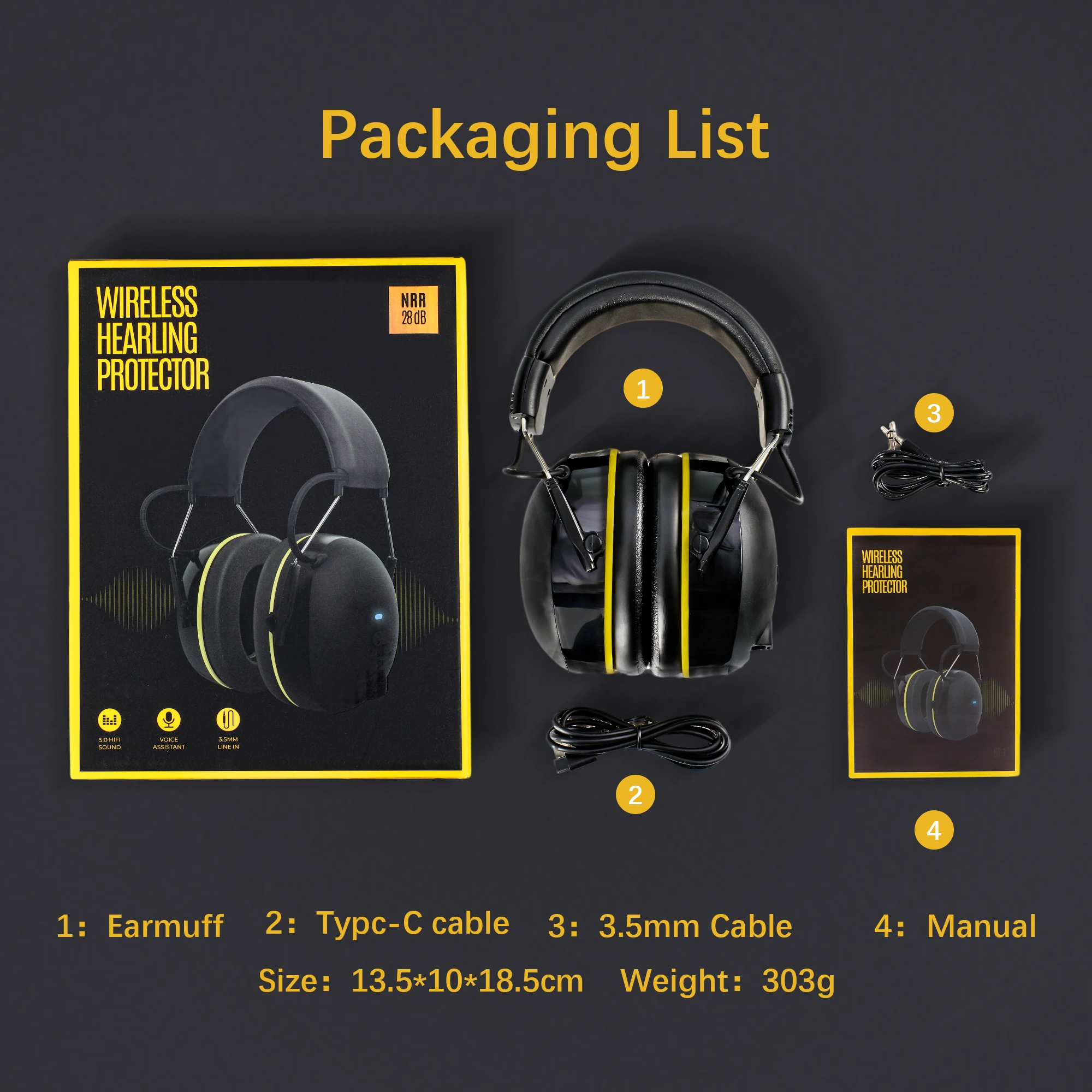Shooting Earmuff Connect Hearing Protector with Bluetooth Technology 28dB Ear protection for Mowing Construction Work Shops