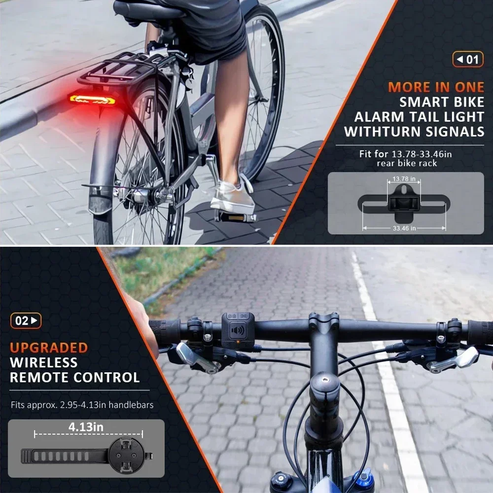 New Bicycle Burglar Alarm Taillight IP65 Waterproof USB Charge Scooter Bike Rear Lamp Turn Signal Warning Auto Brake Light
