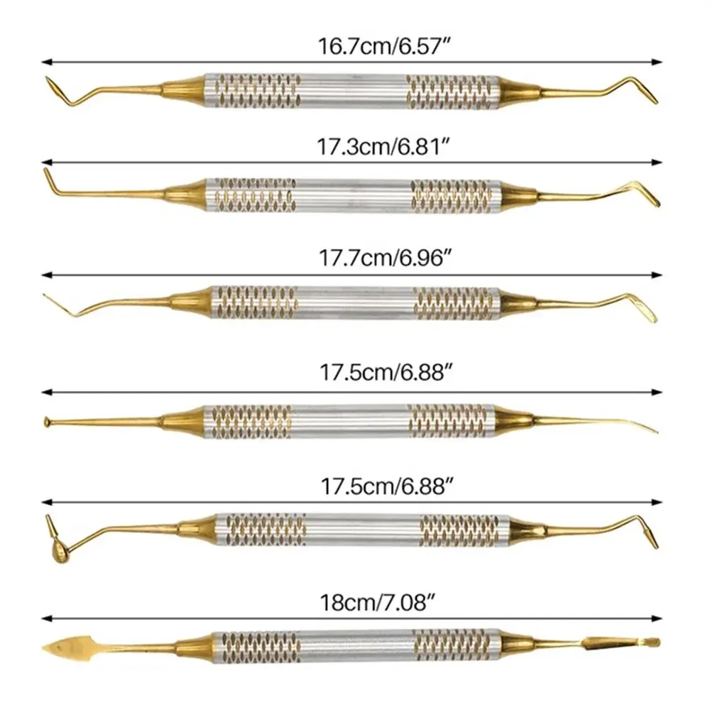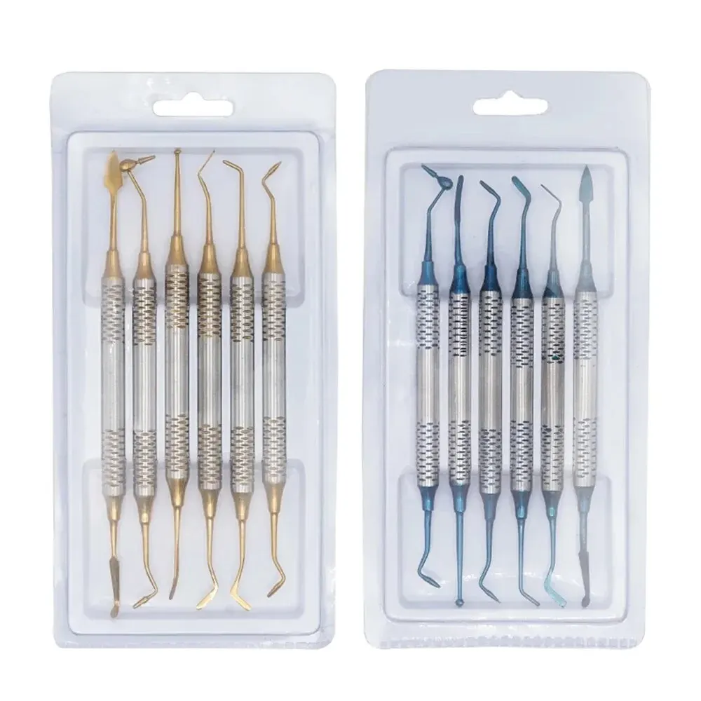 6Pcs/Kit Orthodontic Composite Resin Filling Spatula Restoration Tool Denspay Titanium Plated Head Resin Filler Set Thick Handle