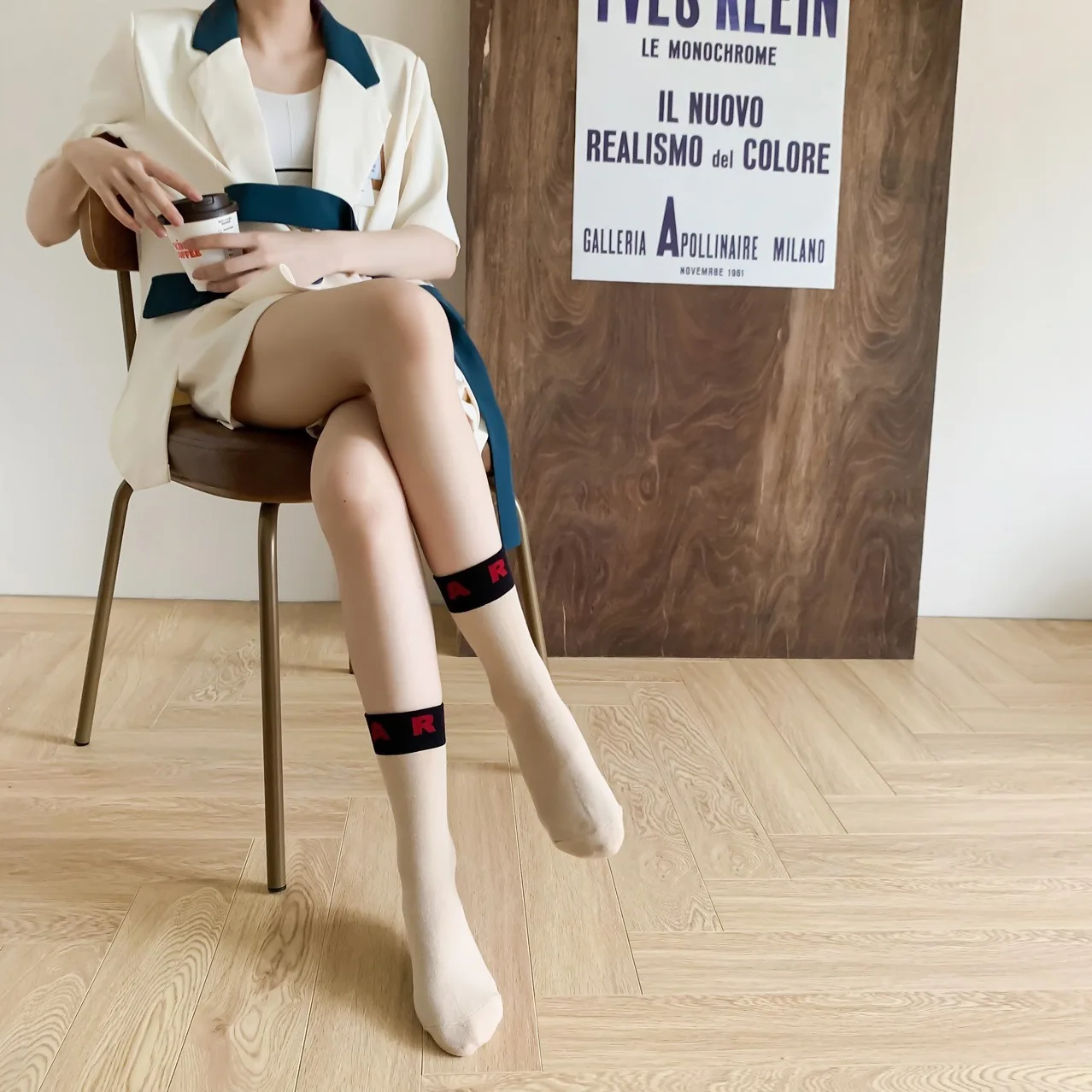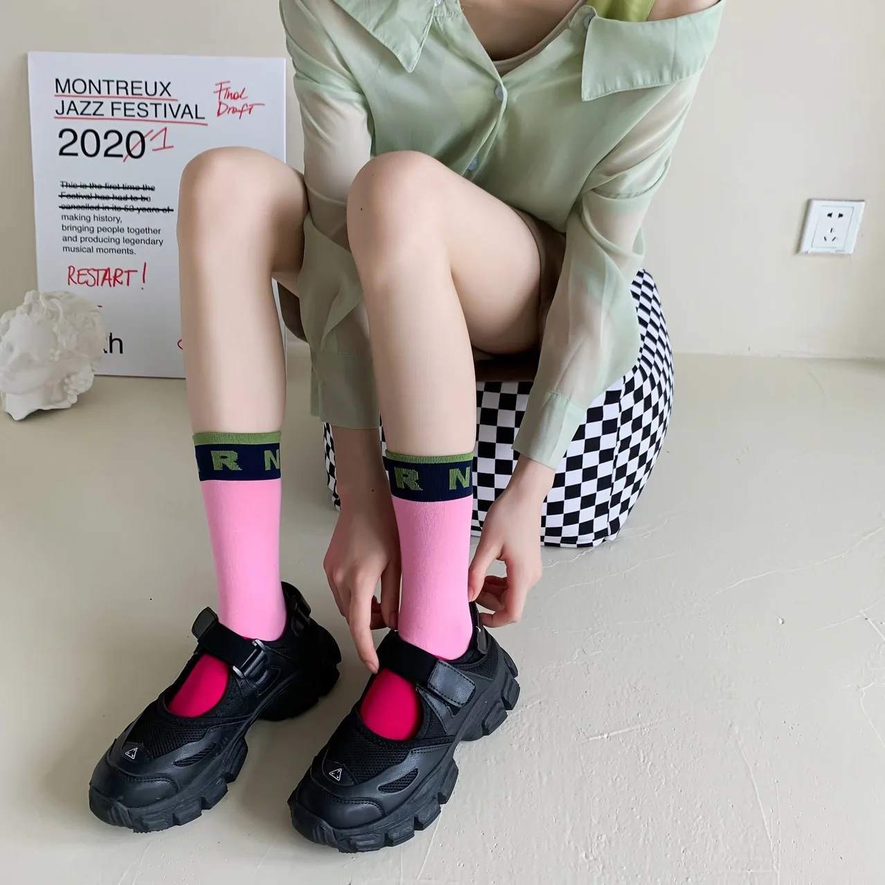 Women's Socks Korean Contrast Color Alphabet Sports Fashionable Casua Socks Comfortable Breathable Soft Cotton Socks For Girl