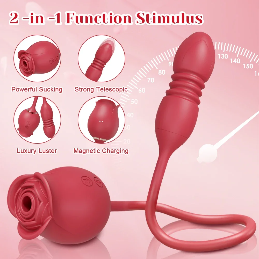 Rose-Sucking Vibrator for Women Clit Clitor Stimulator G Spot Thrusting Dildo Vibrating Female Masturbator Massage Toy