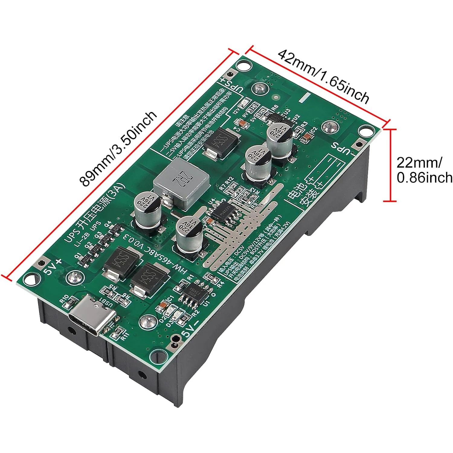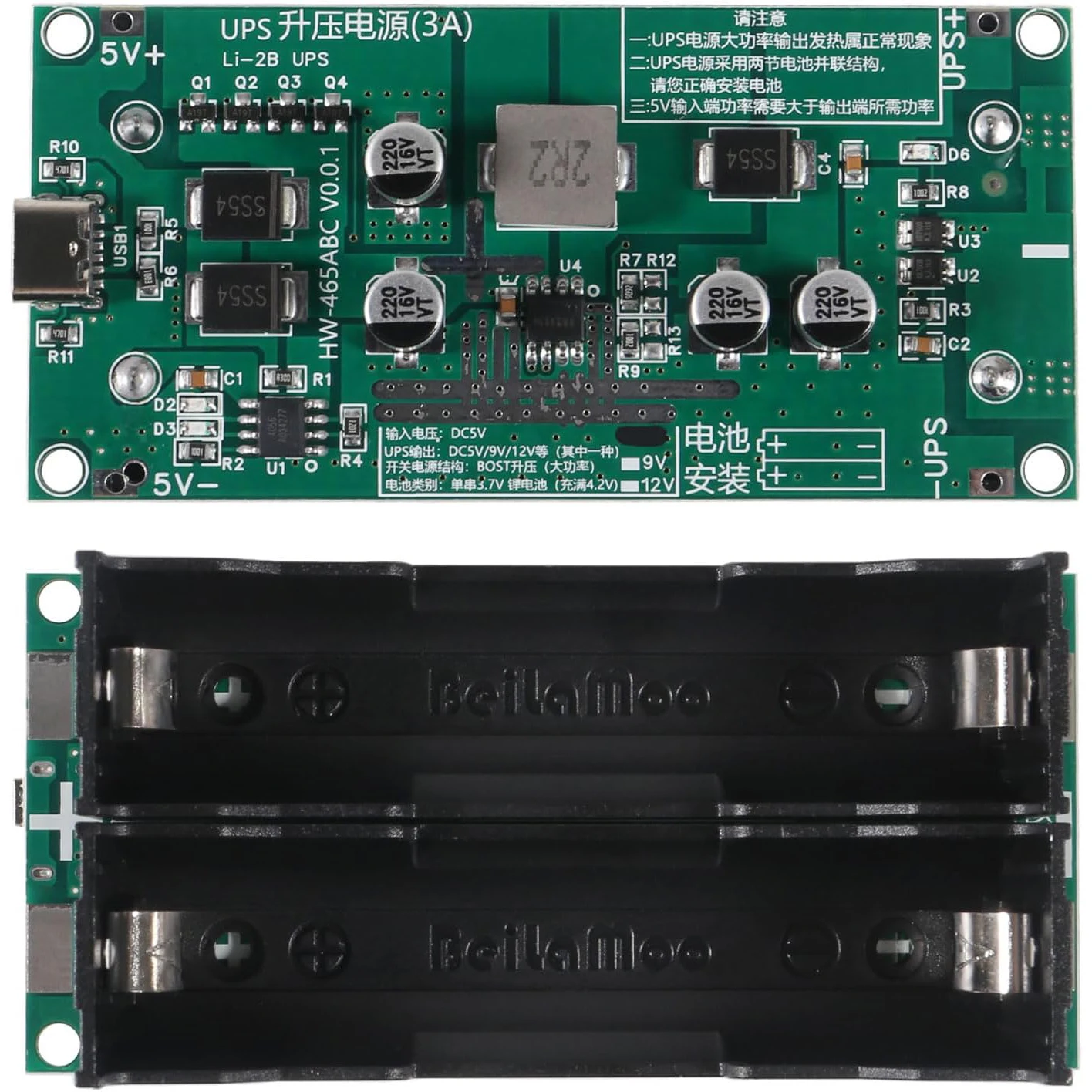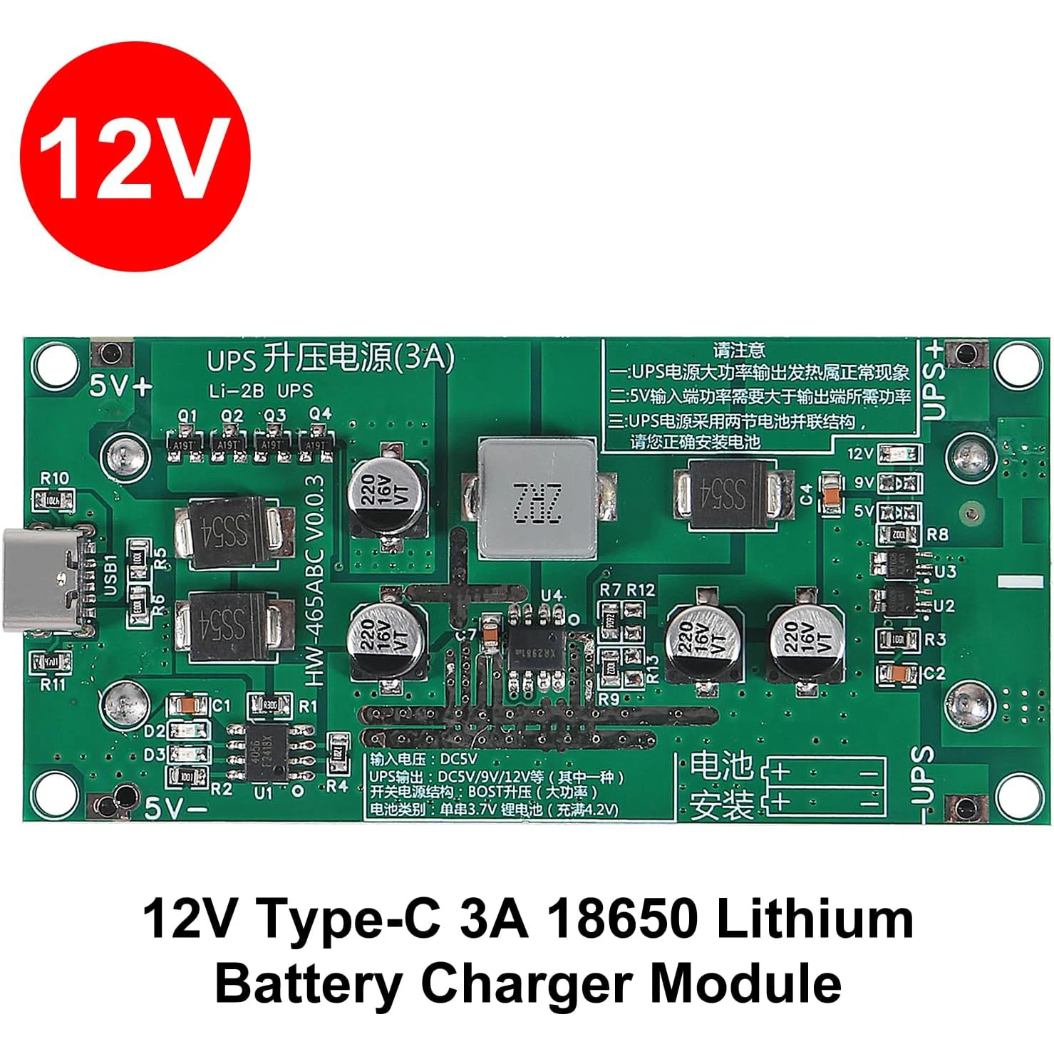 18650 Lithium Battery Charger Module DC-DC Step up Booster Converter 15W 3A Fast Charge UPS Power Supply Type-C 5V 9V 12V