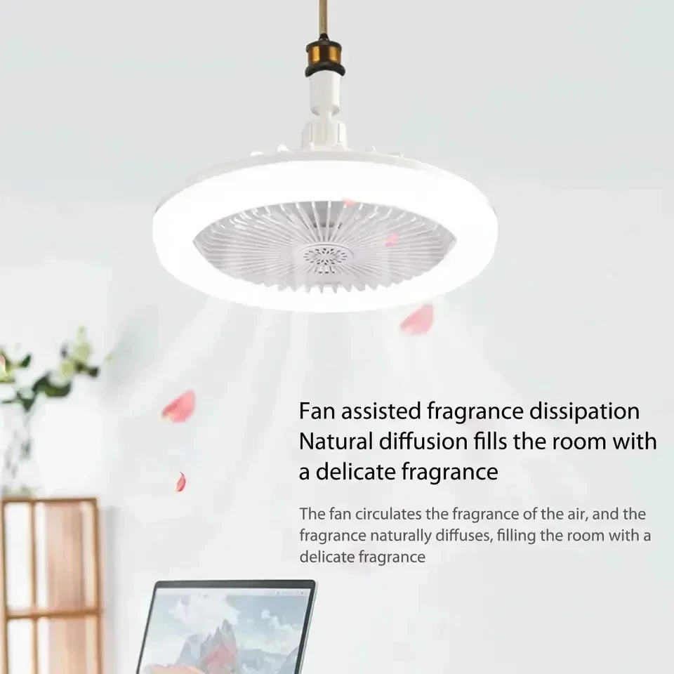Rotatable 3in1 Ceiling Fan with Remote Control Lighting Lamp E27 Converter Base Lighting Base Bedroom Living Room Aromatherapy