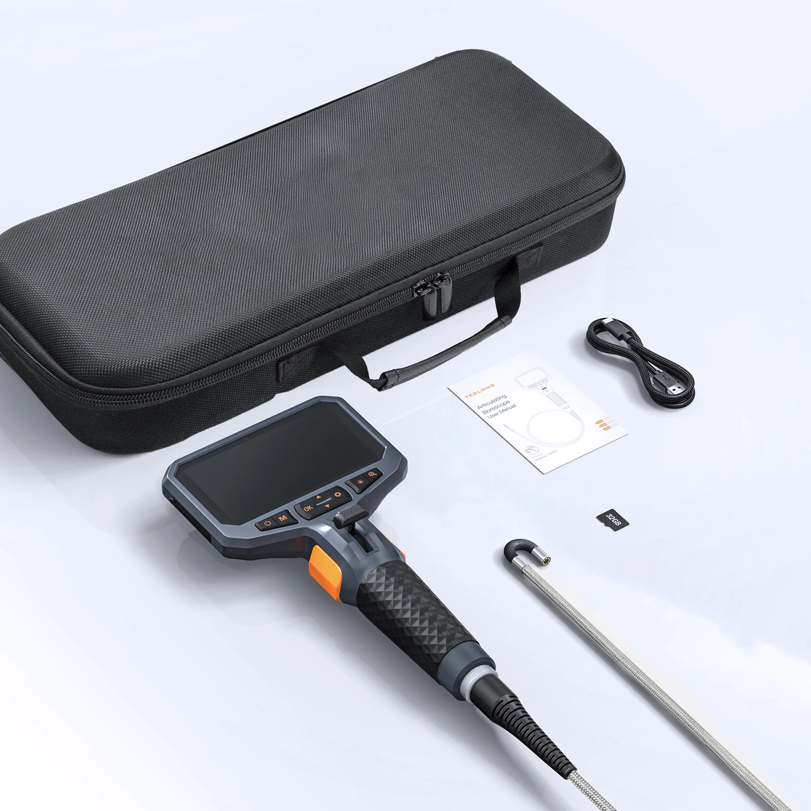 TESLONG TD450S 5.5MM Articulating Borescope 1080P 5 Inch IPS Two Way 360° Steering Endoscope Camera 1m Stainless Steel Tube