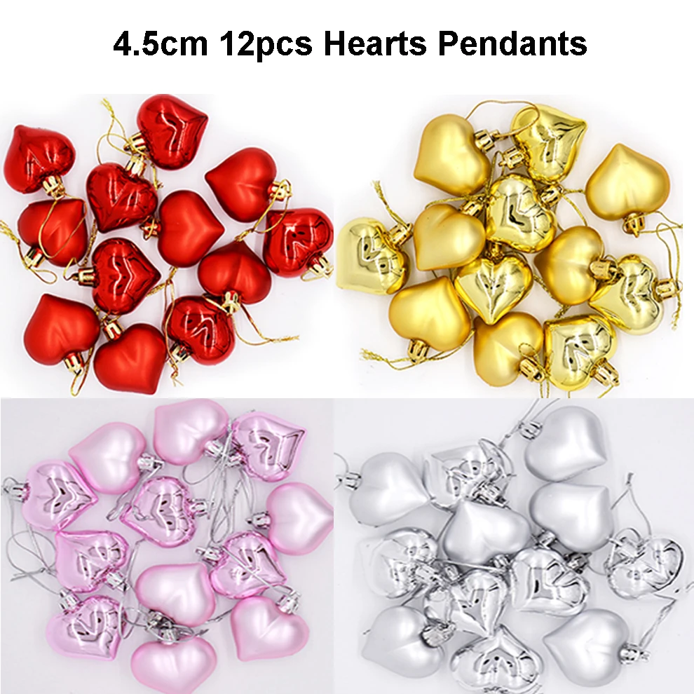 12Pcs Christmas Balls Xmas Tree Hanging Ornaments Ball Heart Stars Gold Red Pendants Merry Christmas Party Decor 2023 New Year