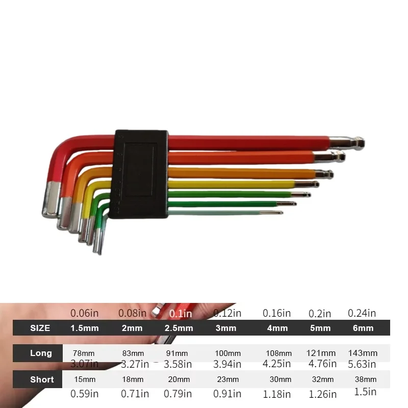 7Pcs Bike Hex Tool MTB Road Bike Repair Tool Kit Bicycle Colorful Hexagon Spanner Flat Ball Opening Wrench 1.5/2/2.5/3/4/5/6mm