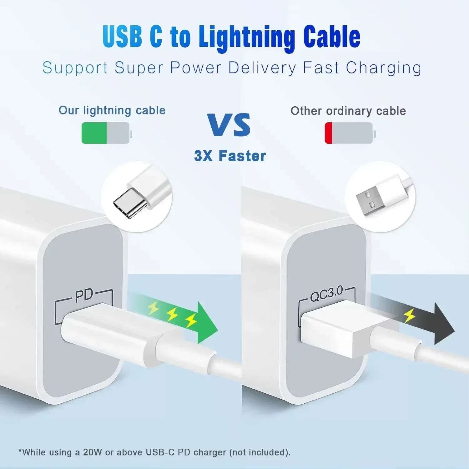 30W PD Fast Charging Cable for iPhone 14 13 12 mini 11 Pro XS Max XR X 8 7 Plus SE Cable 1m 1.5m 2m 3m