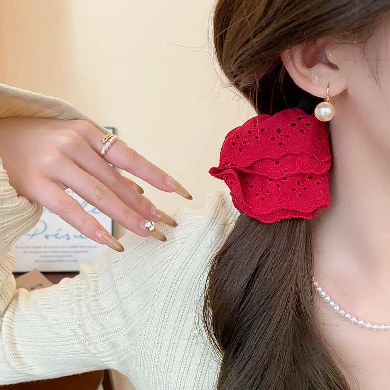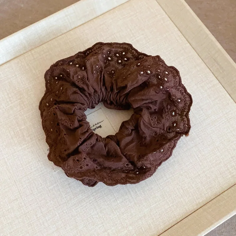 Round Flower Lace Hollowed Pleated Double Layered Scrunchies for Women Sweet Gentle High.Low Ponytail Hair Ties New Accessories