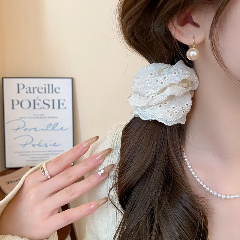 aliexpress , ali , shop , ali shop , online , prodavnica , online shop , online prodavnica , kupujem , prodajem , Round Flower Lace Hollowed Pleated Double Layered Scrunchies for Women Sweet Gentle High.Low Ponytail Hair Ties New Accessories