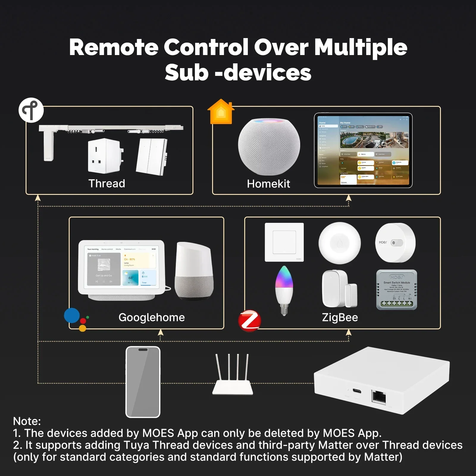 MOES Matter Gateway, Enjoy Smart Home Control with Tuya Zigbee, Voice Control with Siri, HomeKit, SmartThings, Google Assistant,