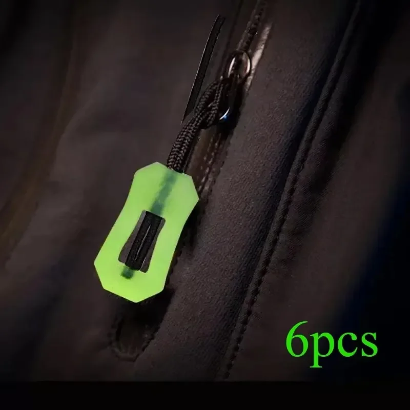 6Pcs Luminous Zipper Pull Rope Glow in The Dark Zipper Head Anti-lost Backpack Clothes Jackets Slider DIY Repair Kit Sewing Tool