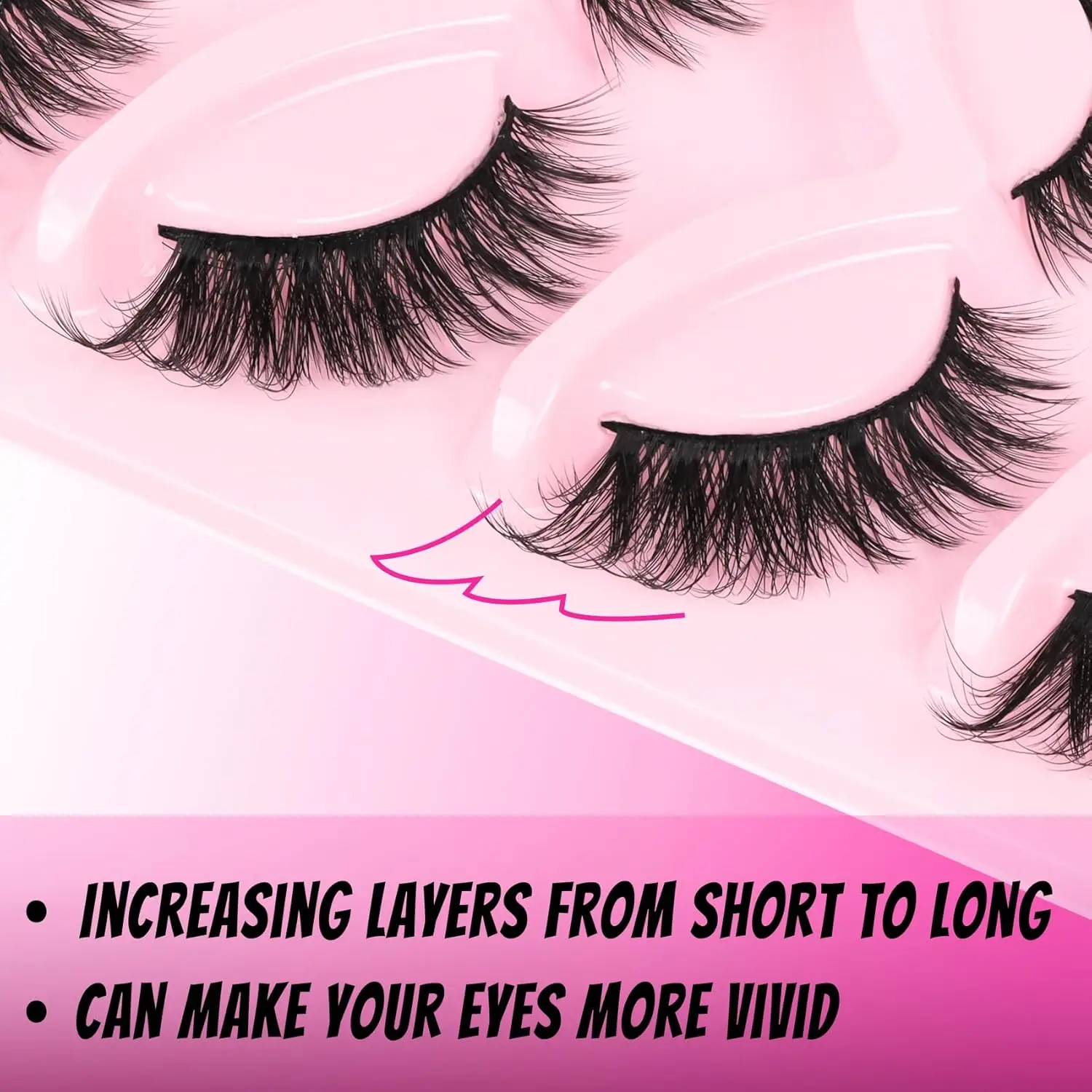 10 Pairs Pack Cat Eye Lashes Faux Mink Eyelashes Crisscross 3D Multilayered False Eyelashes L Curl Fox Eye Lashes